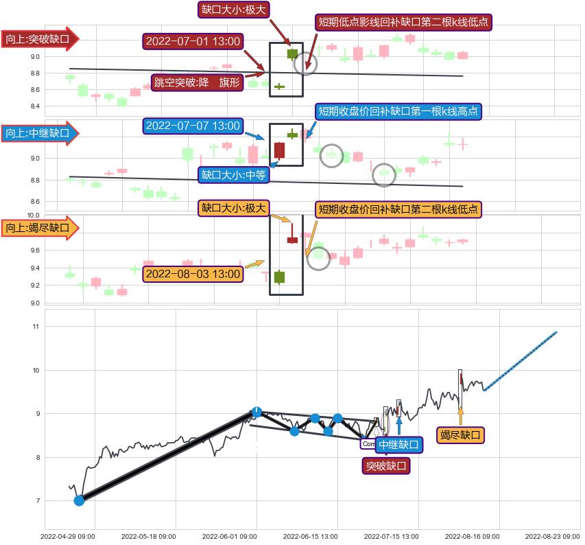 ➢ 2022-08-03 13:00形成:向上跳空【竭尽】缺口