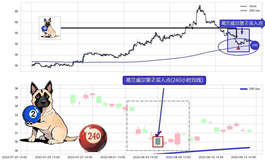 形态多维评估: ⚀ 2022-08-03 14:00:00-小时显现 葛兰威尔均线 240小时均线 第②买入点 上升趋势的中继信号,后市看涨,买进信号