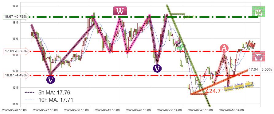 ♘ 阻力价格位18.67,可信任强度98.25%,距离最后交易2022-08-12 14:00形成的收盘价格17.66相差 +5.73%
