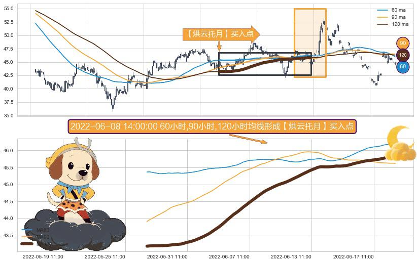 ⚀ 2022-05-26 14:00:00小时-2022-06-22 13:00:00小时显现 60小时-90小时-120小时均线 【烘云托月】买入点 看多信号,后市看涨,买入