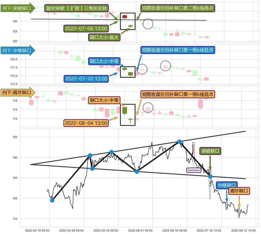 ➢ 2022-08-04 13:00形成:向下跳空【竭尽】缺口