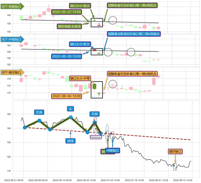 ➢ 2022-08-04 13:00形成:向下跳空【竭尽】缺口