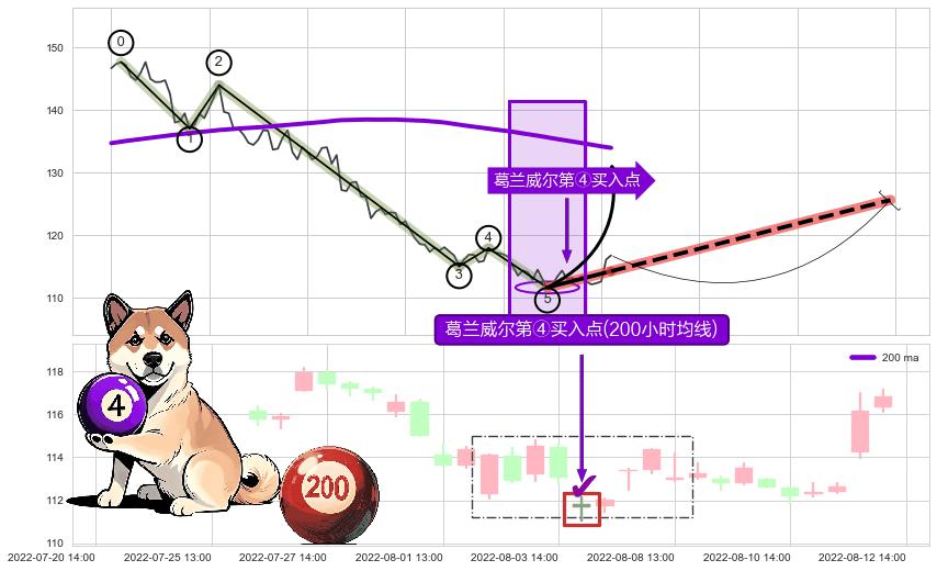 | 4 🅚:【高山滑雪】买入点 ➕ 🌊:波浪理论猜想下跌浪5已形成,猜想后续形成abc反弹上涨(均值回复) ☞ 看多信号 ⇥ 【均线】交织【图形】⇥ 综合量化分数: 52 | > |
