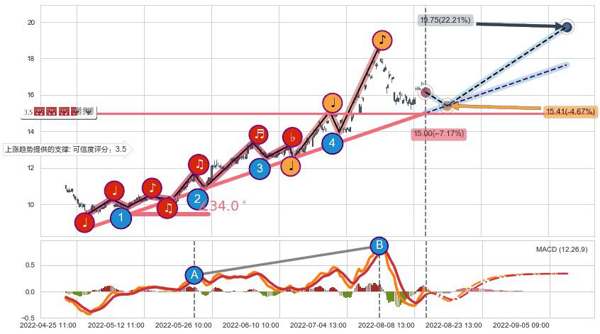 ➢ 预测:2022-08-17 12:00,【小幅回撤】稳定目前上涨趋势的前提下,预测价格:15.41