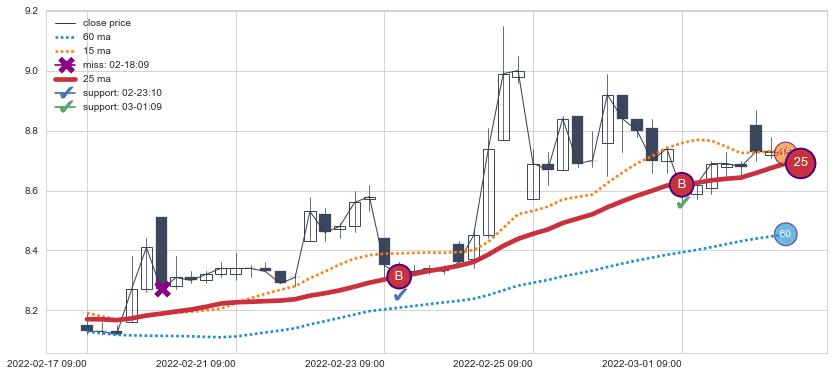 上涨趋势02-17 09:00-03-02 11:00,均线25确认关键支撑2处