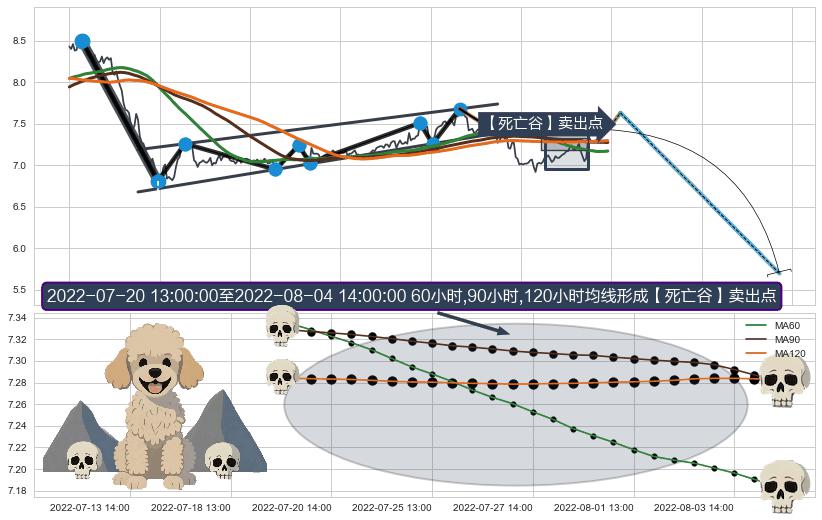 | 8 🅚:【死亡谷】卖出点 ➕ 📈:趋势线上涨趋势原支撑已出现破位,猜想原支撑已变为阻力位(大周期均值回复) ☞ 看空信号 ⇥ 【均线】交织【图形】⇥ 综合量化分数: 44 | > |