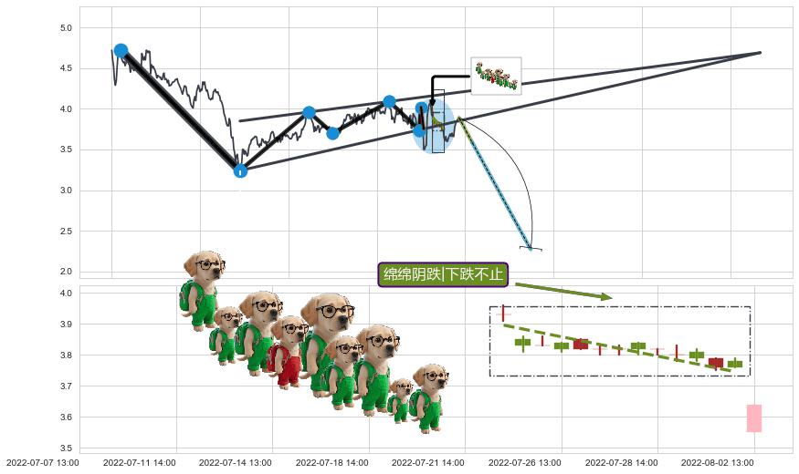 ➢ 收盘价(08-05:14: 3.690 )→再次回踩→第二根k线高点(08-02:13: 3.640 )