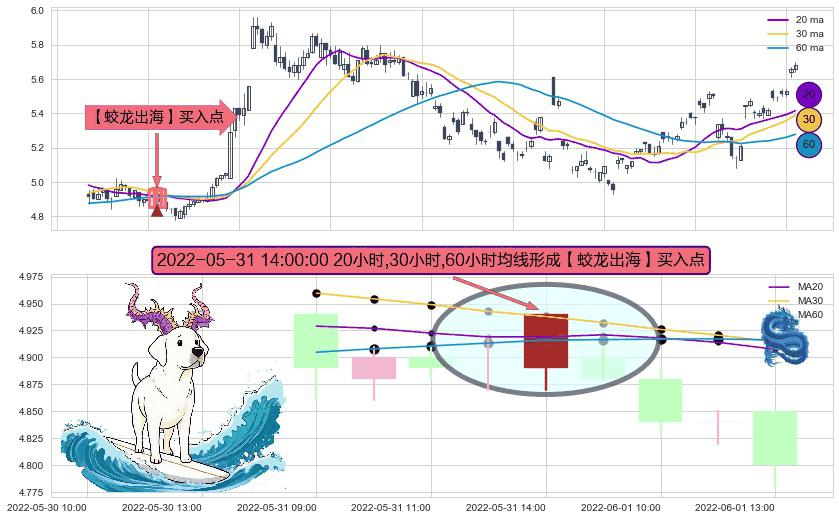 形态多维评估: ⚀ 2022-05-31 14:00:00小时显现 20小时-30小时-60小时均线 【蛟龙出海】买入点 看多信号,后市看涨,买入