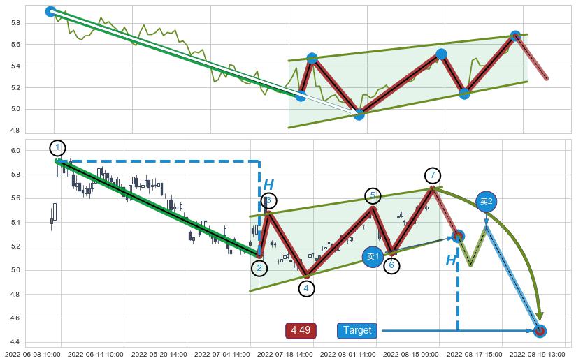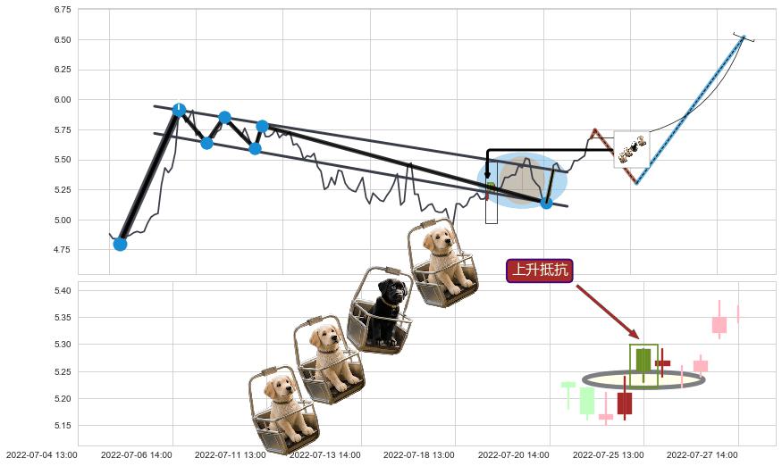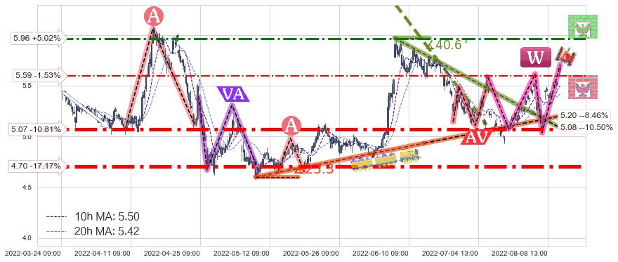 ♘ 阻力价格位5.96,可信任强度65.57%,距离最后交易2022-08-12 14:00形成的收盘价格5.68相差 +5.02%