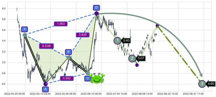 ➣ 已完成【螃蟹】形态起点X: 04-22:14, 终点D: 06-08:09, 共142交易小时