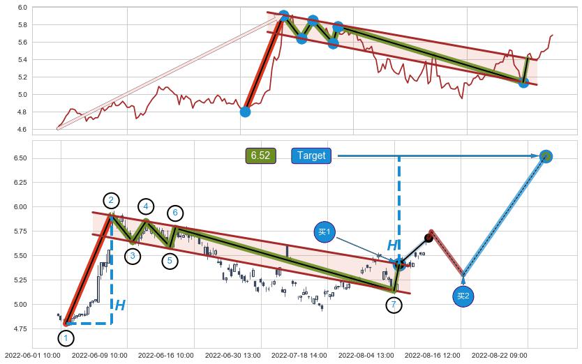 ➣ 最小中继整理跌幅→𝐇: 0.7900 (𝐇旗杆的长度:旗杆起点→顶点)