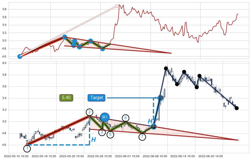 ➢ 最小中继整理涨幅→𝐇: 0.49000 (𝐇楔型旗杆的长度:楔型起点→顶点)