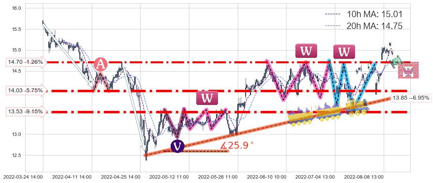♞ 10小时均线:15.01,20小时均线:14.75→ 快线>慢线
