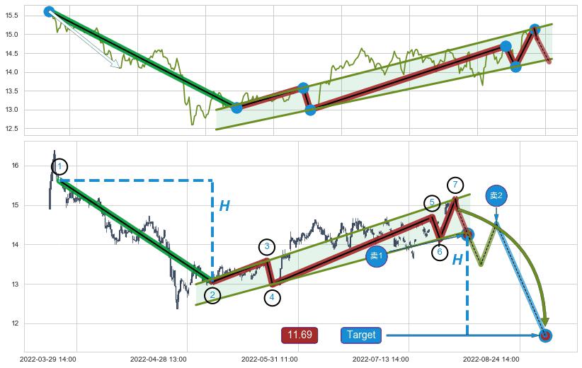➣ 最小中继整理跌幅→𝐇: 2.570 (𝐇旗杆的长度:旗杆起点→顶点)