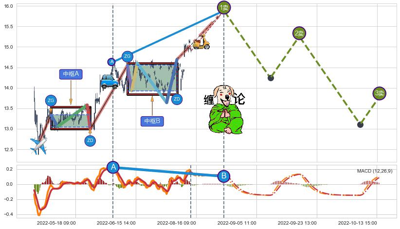 ➢ AI智能预测:缠论第三类卖点【卖❸】→(10-14:12: 13.79 )
