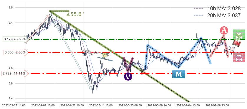 ♘ 阻力价格位3.179,可信任强度69.75%,距离最后交易2022-08-12 14:00形成的收盘价格3.070相差 +3.56%