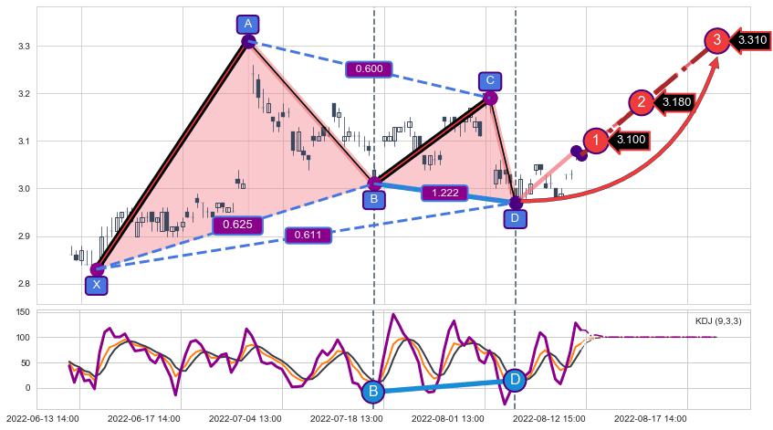 ➣ AI预测: 假定反转继续,第❷价格目标位置(08-16:12, 3.180)