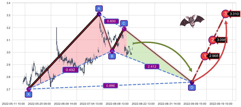 ➣ 未完成【蝙蝠】形态起点X: 05-12:13, 已到达C点: 08-01:14, 预测最终D点: 09-05:15, 共303交易小时
