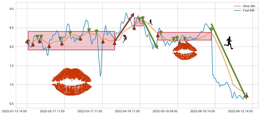 04-29 14:00至06-14 14:00 慢线与快线多次接触,存在上下穿越,有缠绕
