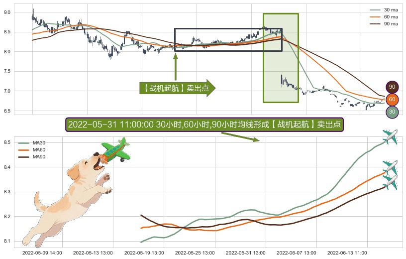 ⚀ 2022-05-17 14:00:00小时-2022-06-14 14:00:00小时显现 30小时-60小时-90小时均线 【战机起航】卖出点 看空信号,后市看跌,卖出