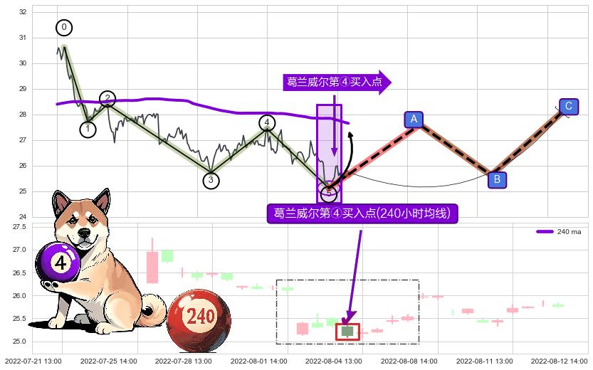 ➣ 收盘价(07-25:14: 26.35 )→回踩→第一根k线低点(07-21:14: 26.30 )