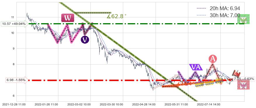 ♞ 20小时均线:6.94,30小时均线:7.00→ 快线<慢线