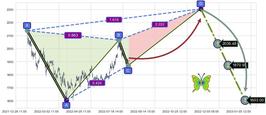 ➣ D点拟合预测价格2304.43,距离最后交易收盘价格1928.00相差 +19.52%