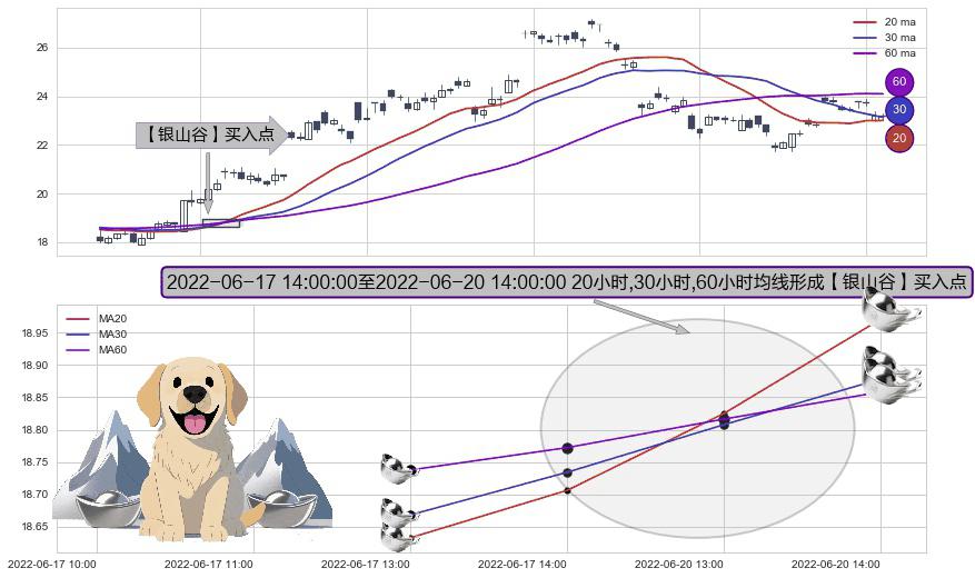 ⚂ 【银山谷】买入点 由MA20均线上穿MA30均线和MA60均线,MA30均线上穿MA60均线形成