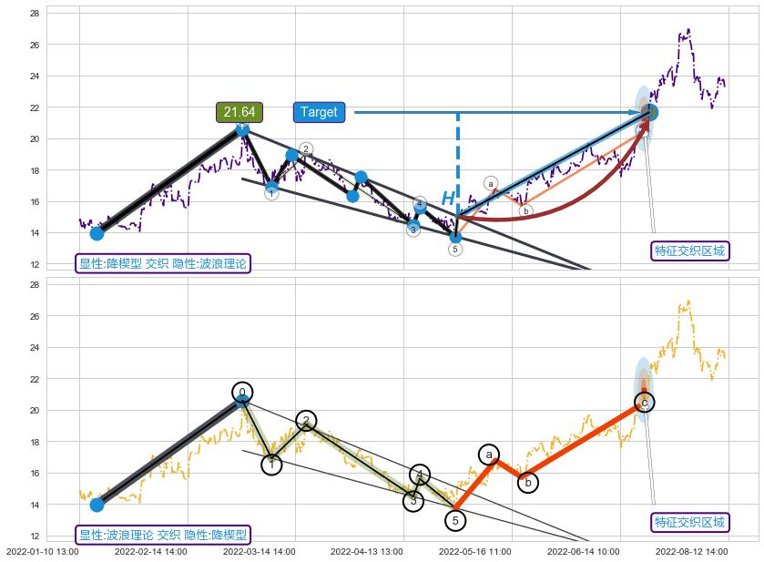 从2022-07-20 13:00至2022-08-12 14:00,共包含36个小时,阶段股价下跌-14.37%,阶段股价变动位移路程比: 1 : 3