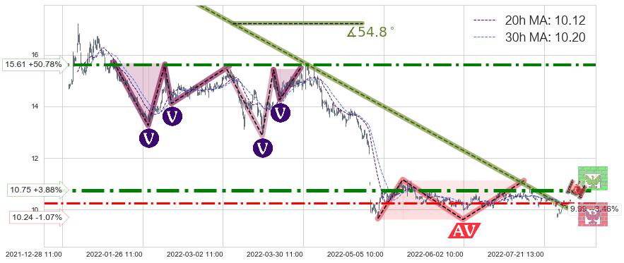 ♞ 20小时均线:10.12,30小时均线:10.20→ 快线<慢线