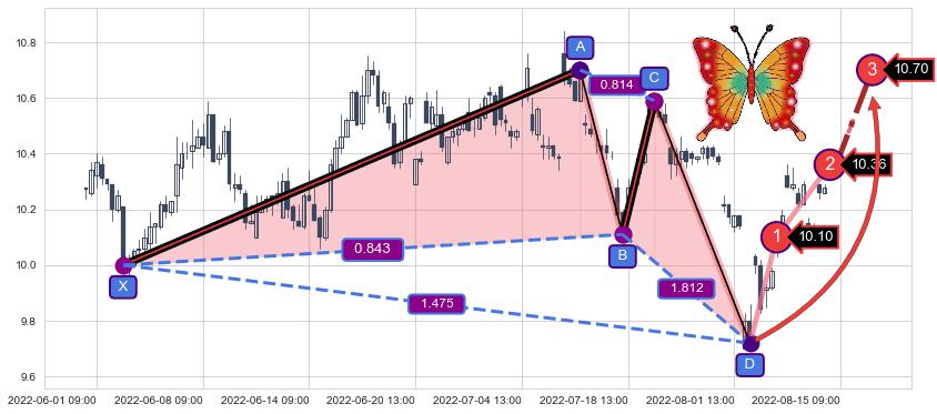 ➣ 已完成【蝴蝶】形态起点X: 06-02:09, 终点D: 08-02:14, 共119交易小时