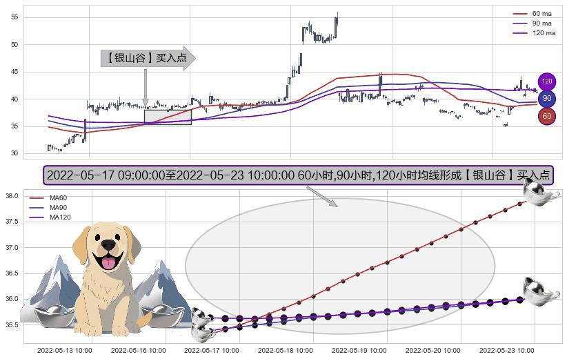 形态多维评估: ⚀ 2022-05-17 10:00:00-小时至2022-05-23 10:00:00-小时显现 60小时-90小时-120小时均线 【银山谷】买入点 看多信号,后市看涨,买入