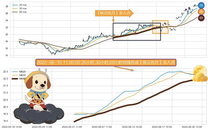 ⚀ 2022-05-30 11:00:00小时-2022-06-28 14:00:00小时显现 20小时-30小时-60小时均线 【烘云托月】买入点 看多信号,后市看涨,买入