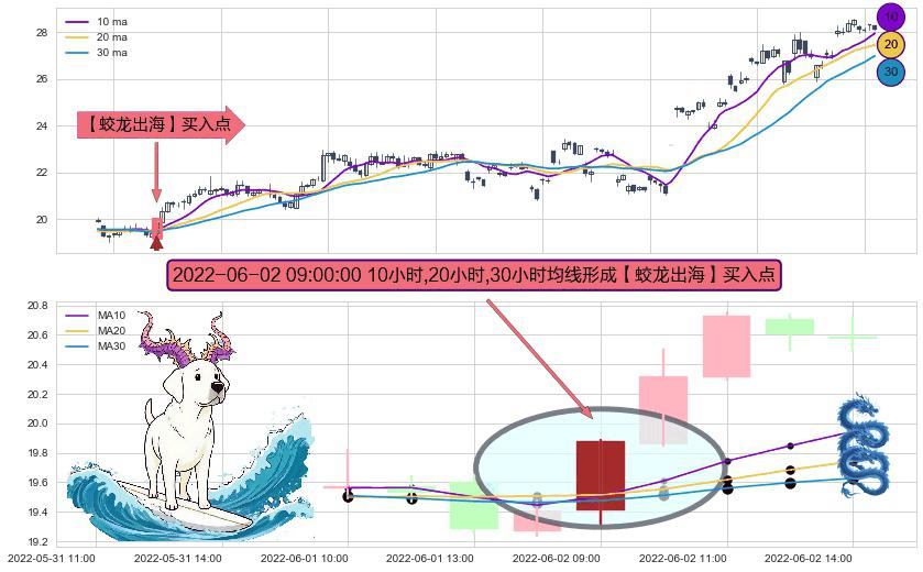 ⚀ 2022-06-02 09:00:00小时显现 10小时-20小时-30小时均线 【蛟龙出海】买入点 看多信号,后市看涨,买入