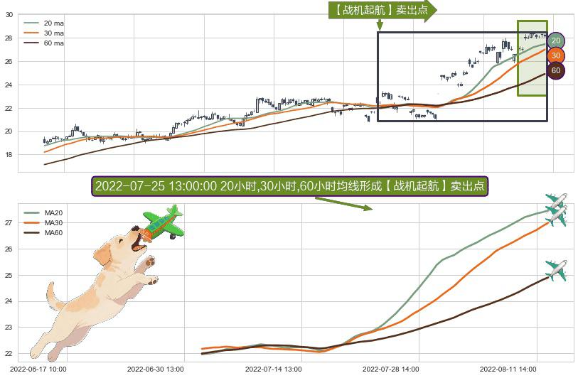 ⚀ 2022-07-01 14:00:00小时-2022-08-12 14:00:00小时显现 20小时-30小时-60小时均线 【战机起航】卖出点 看空信号,后市看跌,卖出