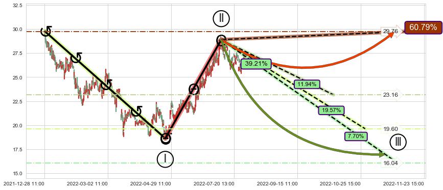 ➢ 循环浪继续向下【最低】位置(11-17:13, 16.04),匹配聚类样本比例19.64%, 可能性概率7.70%