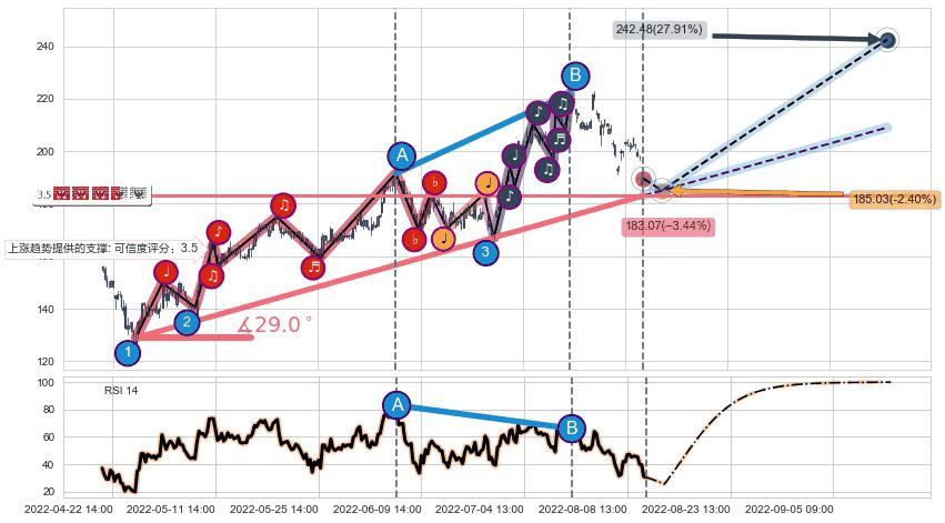 ➢ 预测:2022-08-16 11:00,【小幅回撤】稳定目前上涨趋势的前提下,预测价格:185.03