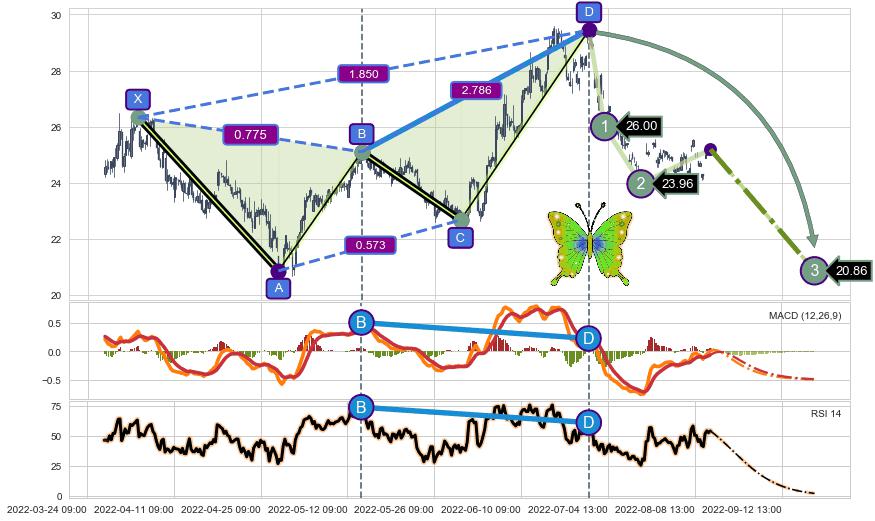➣ 已完成【蝴蝶】形态起点X: 03-31:14, 终点D: 06-24:14, 共261交易小时