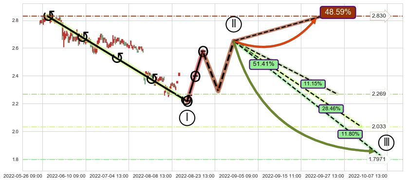 ➣ 大趋势循环浪继续向下概率51.41%