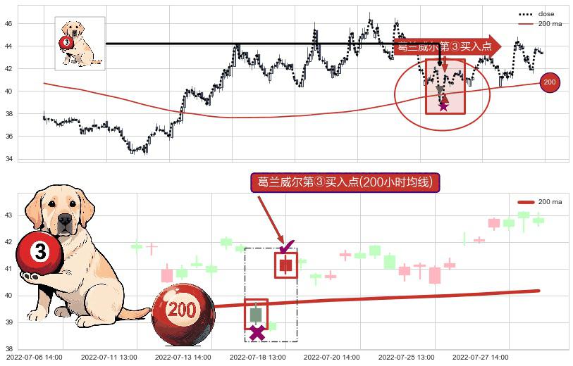 ⚁ 200小时均线 第③买入点 属于 均线服从 信号,属于趋势运行的【常态】即信号期望为上涨趋势的中继
