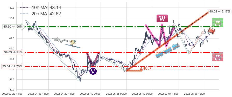 ♘ 阻力价格位45.30,可信任强度79.87%,距离最后交易2022-08-12 14:00形成的收盘价格43.32相差 +4.56%