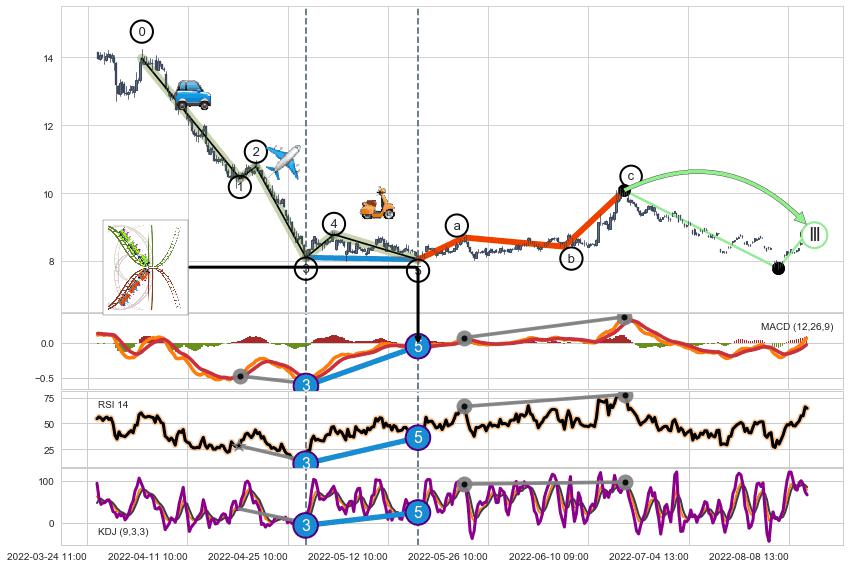 ➢ a,c调整浪MACD, RSI, KDJ走势都【未出现】背离,abc走势延续, 5浪反转概率增强