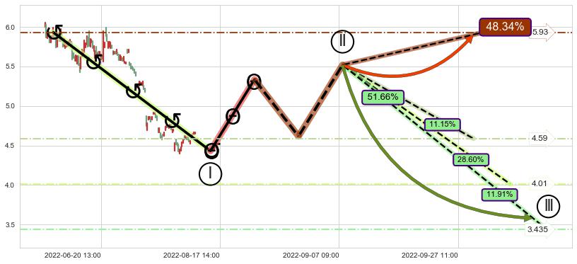 2022-06-15: 第一阻力位5.91强力阻拦了上升趋势,成功阻止了价格的继续上涨。