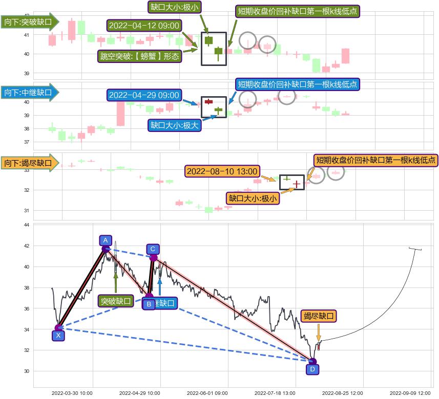 ➢ 2022-08-10 13:00形成:向下跳空【竭尽】缺口