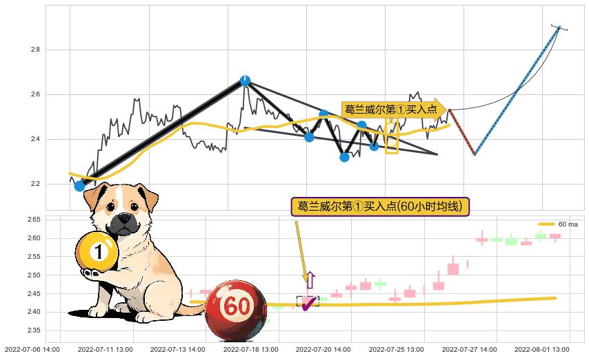 | 4 🅚:上涨身怀六甲 ➕ 🎢:葛兰威尔第③买入点买入点信号形成后,猜想后续持续拉升(趋势跟踪) ☞ 看多信号 ⇥ 【均线】交织【🅚线】⇥ 综合量化分数: 57 | > |
