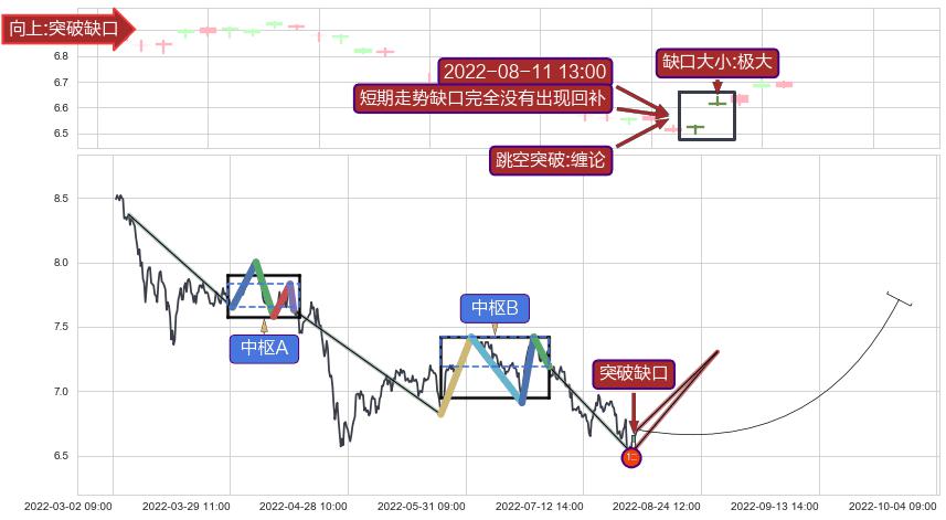 ➢ 2022-08-10 13:00形成:向下跳空【竭尽】缺口