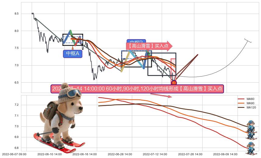 | 5 🅚:降势停顿 ➕ 🎢:【高山滑雪】买入点均线组合买入点信号形成后,猜想后续下行结束,持续反弹上涨(均值回复) ☞ 看多信号 ⇥ 【均线】交织【🅚线】⇥ 综合量化分数: 57 | > |