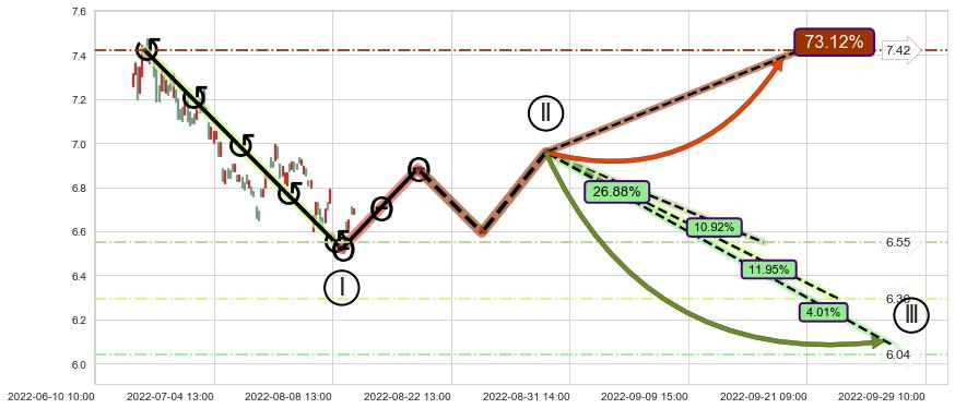 ➢ 循环浪继续向下【最高】位置(09-16:12, 6.55),匹配聚类样本比例40.62%, 可能性概率10.92%