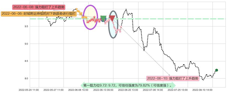 2022-06-10: 第一阻力位9.72强力阻拦了上升趋势,成功阻止了价格的继续上涨。