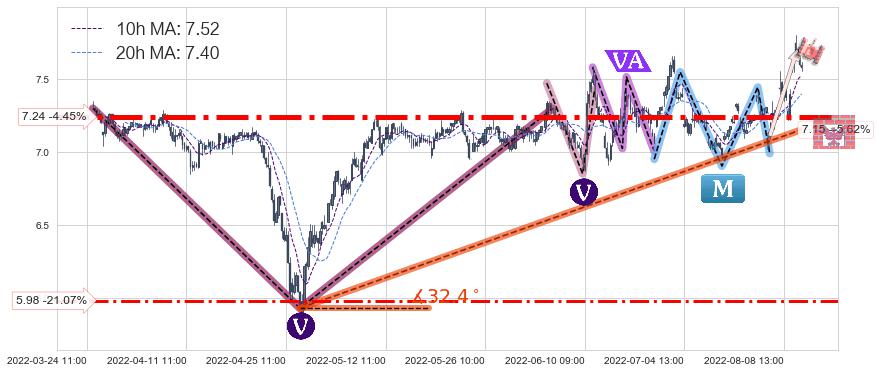➣ 【仅预测突破】最后价格:7.58与预测突破价格:6.94→【空间较大】后续最小【反转】第一目标价格→(08-25:12: 6.17 )